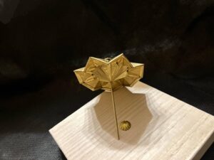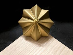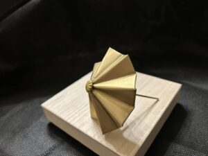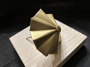 京都の板金職人による繊細な手仕事の一例として、真鍮板を用いて番傘と折鶴を制作しました。