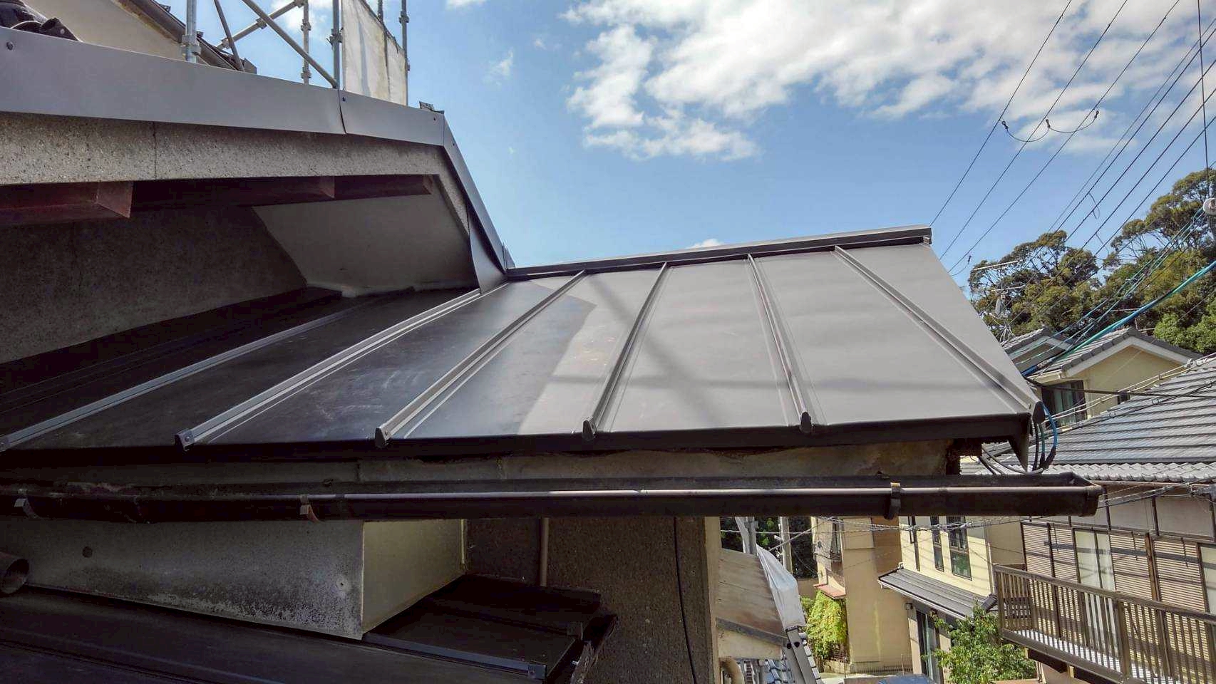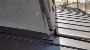 外壁との取り合い部の板金は雨押え板金と呼ばれ、メンテナンスが非常に重要な箇所の一つです。