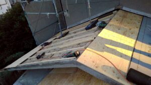 葺き替え工事では、既存の屋根を撤去した後、垂木・野地板と呼ばれる土台をそれぞれ新しく設置します。