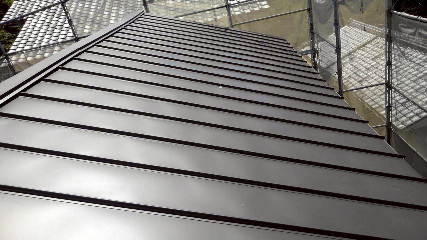 瓦の頃を思い出させるような渋いグレーで、精悍な印象を放つ屋根に。