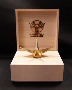 一枚の真鍮板から生まれる、唯一無二の折り鶴。